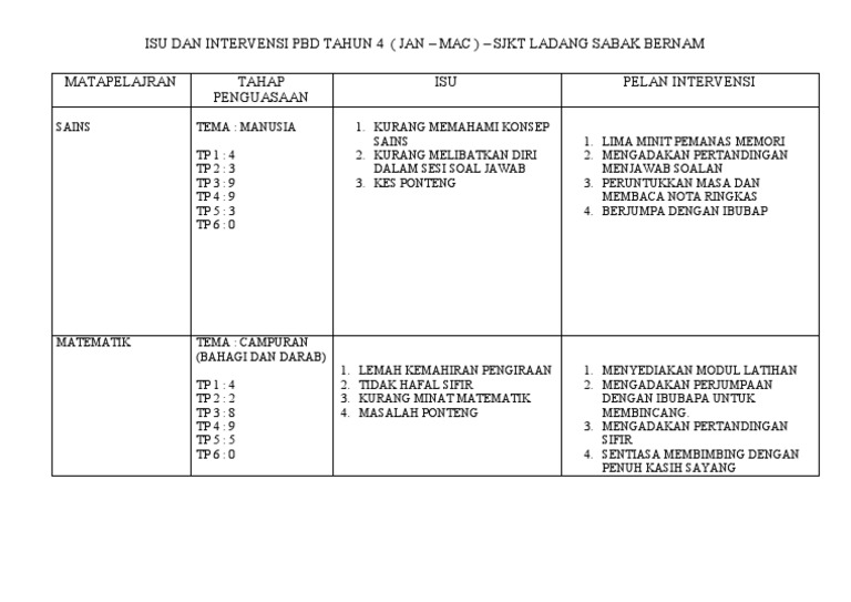 Isu Dan Intervensi Pbd Tahun 4 Pdf